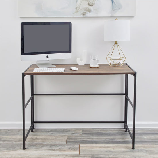 This FlipShelf workstation features a single piece construction that allows for instant assembly, making it easy to set up and use. Its folding metal design makes it portable and easily stored, while the large surface area is ideal for holding a computer, books, files, and more. The adjustable feet provide stability on uneven floors, making it perfect for use in any room of the house, such as your home office, bedroom, or living room. The desk has a professional and sleek design, with dimensions of W x L x H40 in. x 19.25 in. x 29 in., and is made of engineered wood. Its rectangular shape is versatile and fits well in any space. With a retail price of $80 and our price of $49.99, this FlipShelf workstation is a smart and cost-effective choice for any professional or home office setting.