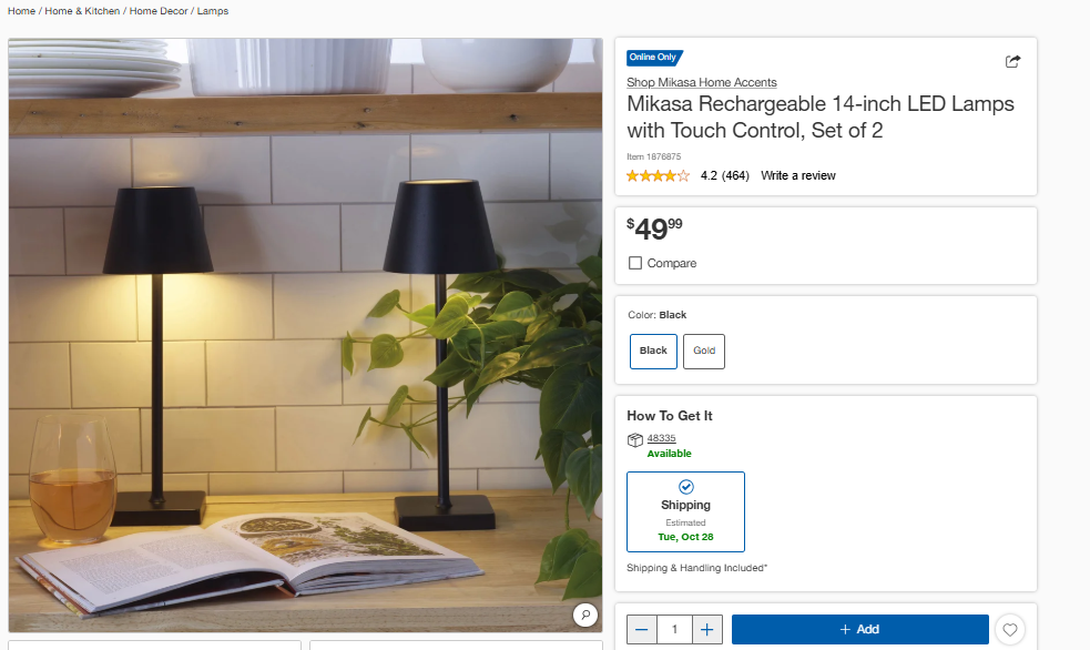 Mikasa Rechargeable 14-inch LED Lamps with Touch Control, Set of 2