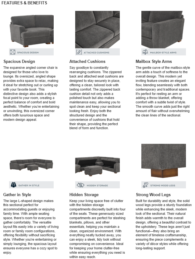· Overall Sectional Dimensions: W x L x H102 in. x 156.6 in. x 35.5 in.