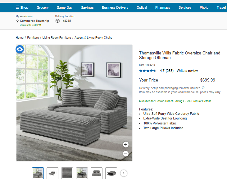Thomasville Wills Fabric Oversize Chair and Storage Ottoman